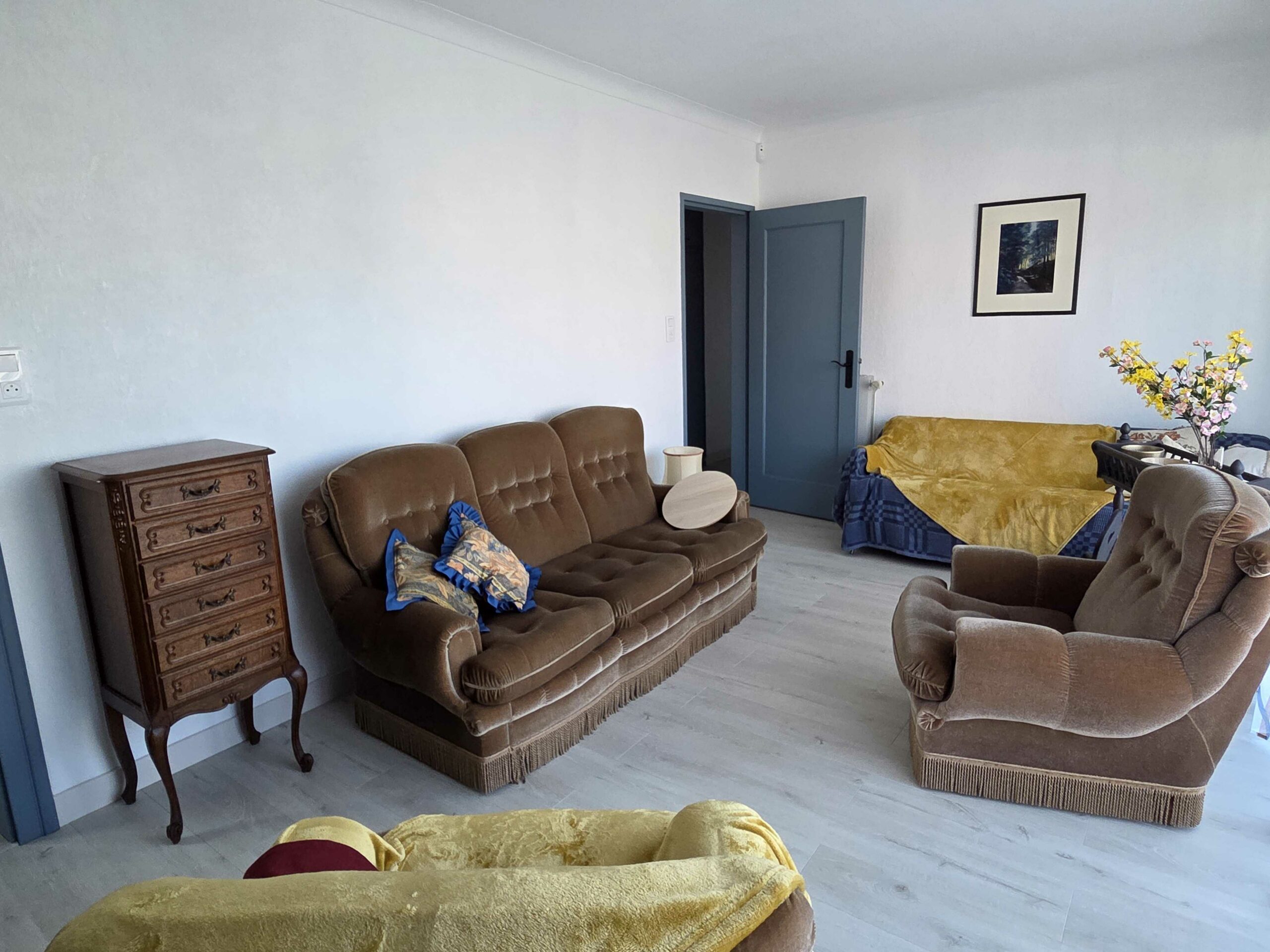 Dans le salon : un clic-clac vous permet de disposer d’un couchage supplémentaire